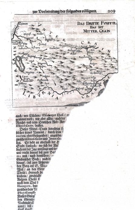Naprodaj je zemljevid iz Valvazorjeve Slave vojvodine Kranjske, ki prikazuje Dolenjsko in Notranjsko, spodaj desno lista malo manjka, vendar so ga restavrirali in vdelali nov papir. V spodnjem kotu manjka samo delček zemljevida, vendar je tisto Hrvaška.