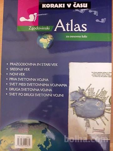 Odlično ohranjen zgodovinski atlas za OŠ (6.-9. razred). Možen prevzem v Laškem in bližnji okolici Litiji, Ljubljani in Postojni, pošljem tudi po pošti, po predhodnjem nakazilu na TRR. Stroški pošiljanja so vaši.