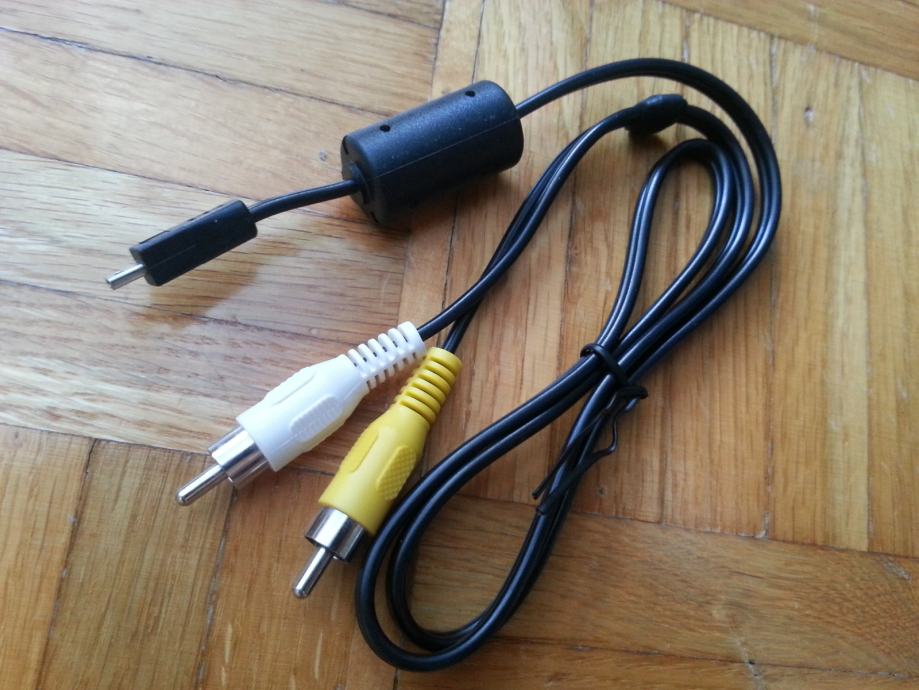 Audio video kabel za povezavo fotoaparata na TV ali video/DVD/HD rekorder in podobne naprave.