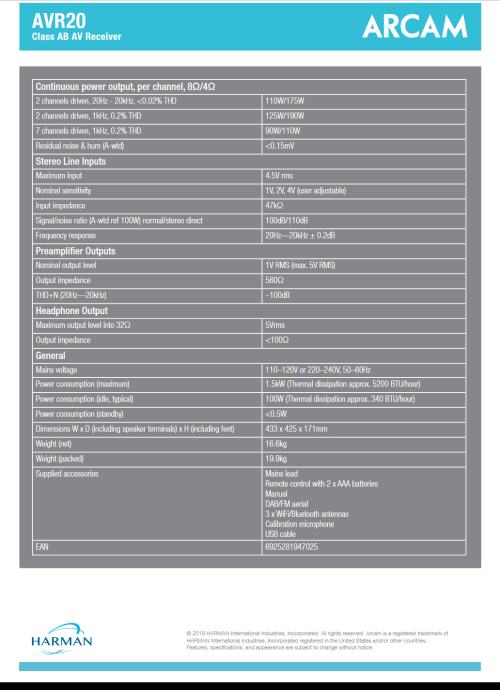 The AVR20 is a high-performance audio/visual receiver that delivers