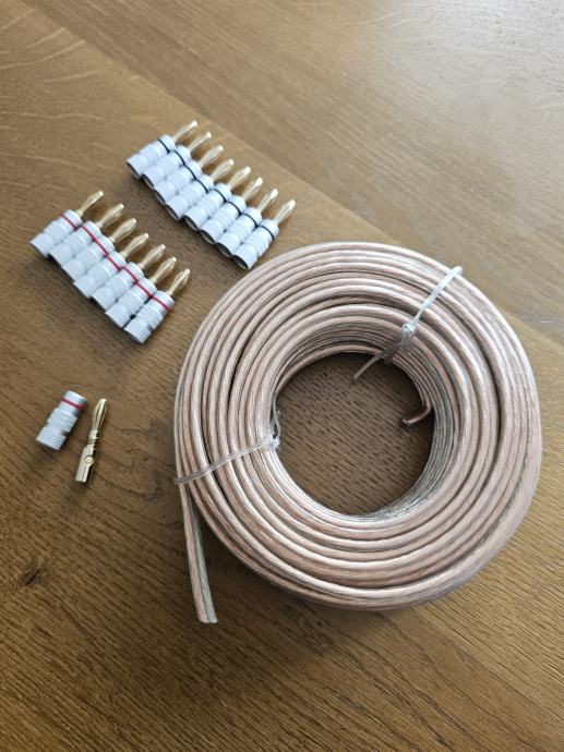 Prodam cel kolut zvočniškega kabla 2,5mm2 , dolžina 15m (50ft) in 16 kosov zvočniških banan.