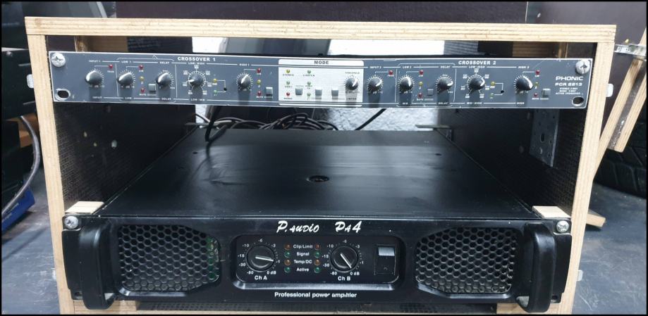 Prodam ojačevalec (spodaj v racku, lahko prodam tudi rack - lesen, narejen po naročilu).