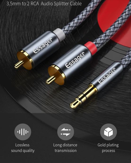 Essager. ( RCA Audio Cable Jack 3.5 to 2 RCA Cable 3.5mm Jack to 2RCA Male Splitter )