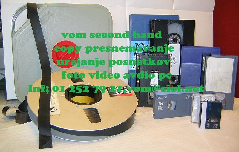 Presnemavanje vseh medijev kot so AUDIO VIDEO...audio kasete, magnetofonski trakovi, CD, micro kasete iz telefonski tajnic, diktafonov znamk; sony, philips in druge...beta kaset..super VHS, VHS c kaset, video kaset, video 8 kaset, MINI DV kaset....starih FILMOV , kot so super8, normal8, 16mm filmov in drugih..preslikava fotografij, dia pozitivov....dokumentov.... NOVO imamo tudi PROFI SNEMANJE POROK po sistemu LEGO KOCKE ZA IZBIRO ŽELJ PRI POMEMBNEM TRENUTKU V SVOJEM ŽIVLJENJU...SAJ ŽELIMO, DA JE POSNETEK NAJ NAJ