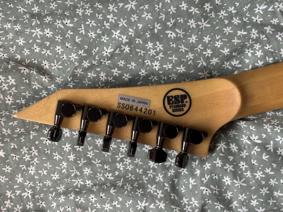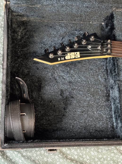 Na prodaj je vrhunska ESP M-II iz ESP Standard Series, izdelana na Japonskem. Klasičen “super-strat” za rock/metal – hitra igra, stabilen tremolo in agresiven EMG zvok. Zraven je priložen usnjen pas za kitaro in original ESP kovček.