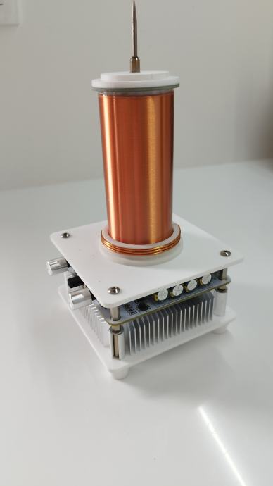 Prodam Music Tesla Coil katera proizvaja visoke frekvence in napetost katera se razelektri iz igle v eter kot strela ki povzroči pok, tako lahko predvaja glasbo.