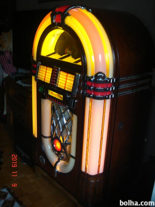 Legendarni, originalni Jukebox WURLITZER je nekaj najlepšega kar se lahko nahaja v vašem stanovanju, kajti to je nostalgija 50-tih in 60-tih let. Ta JUKEBOX deluje na 50 CD-jev, posebej pa je vgrajen originalni modem kateri deluje: radio FM, USB, SD in Bluetooth. Priložena navodila za uporabo in daljinski upravljalnik.