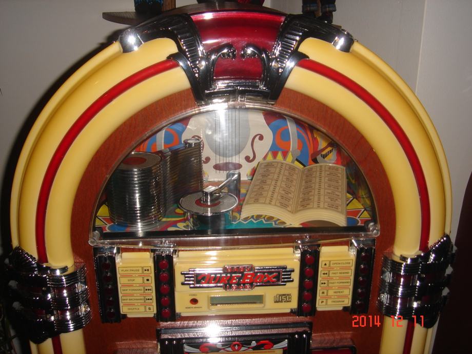 Prodam jukebox Wurlitzer. Jukebox je čudovit okras v stanovanju saj s svojo razsvetljavo naredi prijeten ambient. Ima vgrajen radio, CD predvajalnik ter kasete. Dodatno pa je bila narejena vgradnja MP3 tako da sedaj deluje še USB, SD in Bluetooth. Visok je 1,05 m. Lahko pa z doplačilom 70 EUR dobite tudi podstavek za jukebox.