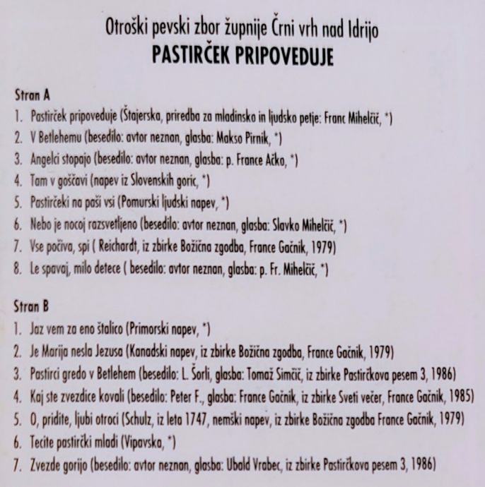 AVDIO-KASETA, OTROŠKE PESMI: PASTIRČEK PRIPOVEDUJE, OTROŠKI PEVSKI ZBOR ŽUPNIJE ČRNI VRH NAD IDRIJO,