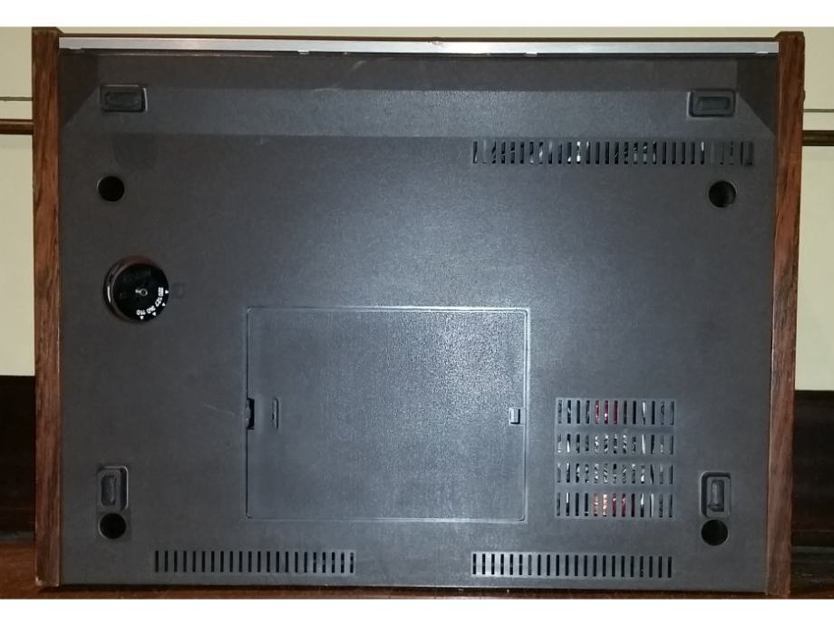 Manjka napisna kovinska ploščica nad priključki zadaj (bilo napisano: 8/4 OHM (stikalo), L.S. (DIN zvočn. vtičnica za dodat. zvočnik), MICRO/RADIO/PHONO (DIN 6-polna vtičnica).
