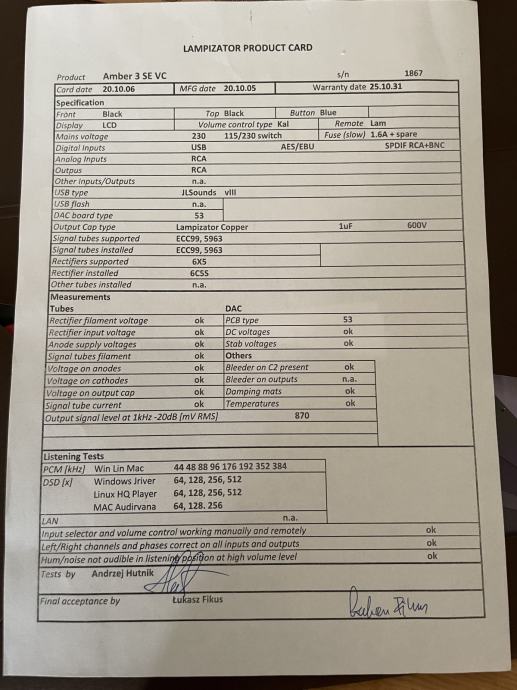 Kot nov, star 4 leta, še v garanciji, Engine 53, 1x ecc82 in 1x ecc99 lampa za preamp funkcijo, usmerniška lampa 6x5. Zelo kvaliteten in precizen volume control & daljinski upravljalnik. 4 digitalni vhodi, 1x analogni vhod. Originalna embalaža, ceritifikat.