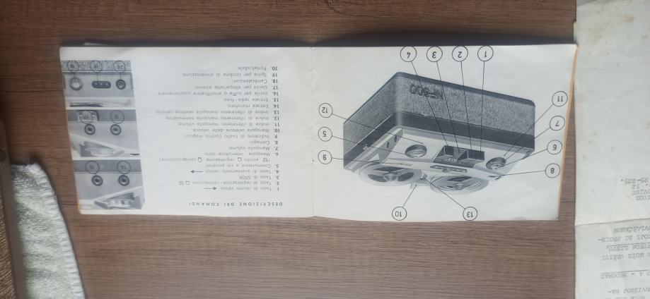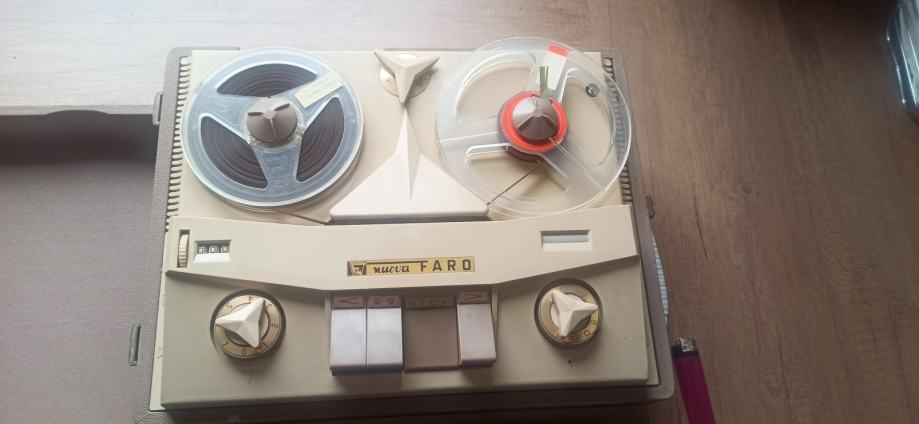 Delujoč vintage italijanski magnetofon Nuova faro - NF 300, z nekaj dodatnimi trakovi z glasbo in original navodili za uporabo, računom in garancijskim listom.
