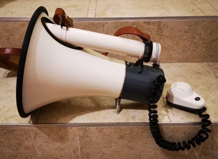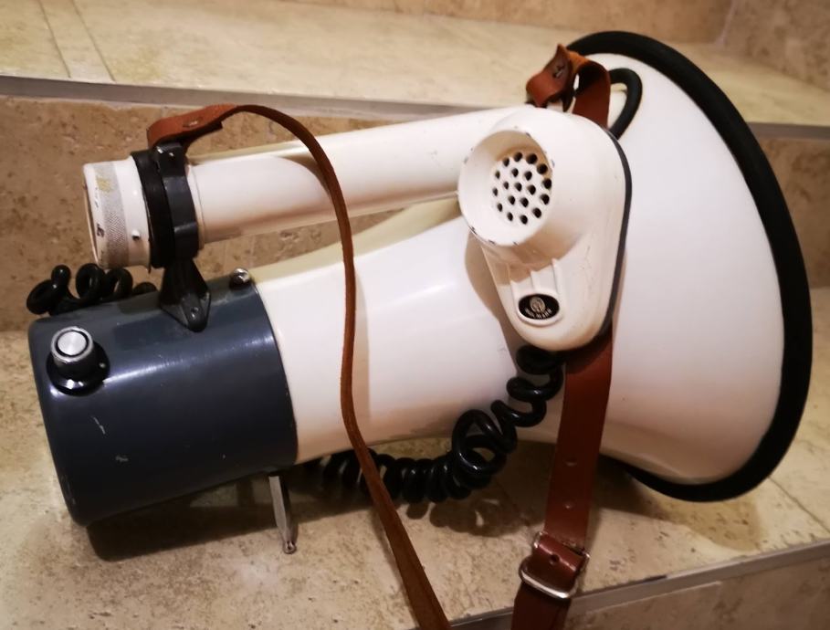 Megafon, primeren tudi za turistične vodnike ali za razne shode, oziroma nagovarjanje večje množice ljudi, pozive na veselice, navijaške skupine itd... Delujeta na baterije. Cena je za enega.