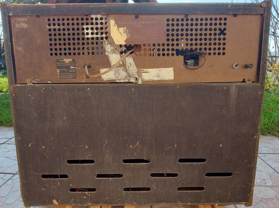 Nostalgična glasbena omara SchaubLorenz - vse razvidno iz slik. Leseni del potreben restavriranja, prav tako radio in gramofon. Je še vse v kompletu, vendar žal ne deluje, restavriranje vsega pa je možno. Žal sem moral od projekta odstopiti, ker presega fin. zmožnosti Dolžina 80cm., širina 45cm, višina 70cm. Nostalgični primerek še vedno lahko ostane kot zanimiv kos pohištva obstoječe zbirke, zato prosim samo resni....