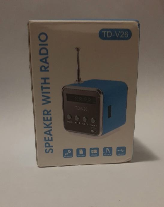 Prenosni baterijski radio Bluetooth, LCD, zvočnik, TD-V26 nov ugodno prodam