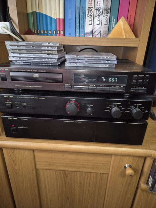 Prodam Rotelov hi - fi sistem iz konca devetdesetih delujoč , z izjemnim zvokom in v viuuelno odličnem stanju . (Par rahlih prask po povrsini skoraj neopazne) sistem sestavljajo : Tunrr Rotel RT961, cd player Rotel RCD 975 , zamenjana je bila optična leča , tuner Rotel RT 961 , ptedojačevalec Rotel RC 995 ter ojačevalec Rotel RB 960 . 2 x 60W pri 8 omih . Komponente so višjega cenovnega razreda in delujejo 100 % - bile so pregledane, očiščene, prelotane in zamenjani so bili vsi okvarjeni čipi . Kupljena je bila pri OD&D Vintage iz Nizozemske .