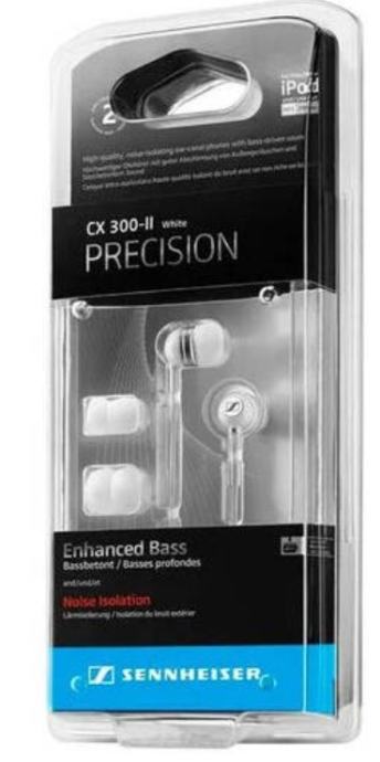 Nove, zapakirane, ušesne slušalke Sennheiser slušalke CX 300-II Precision, močan in dinamičen zvok, odličen odziv nizkih tonov in visoko pasivno dušenje hrupa okolice