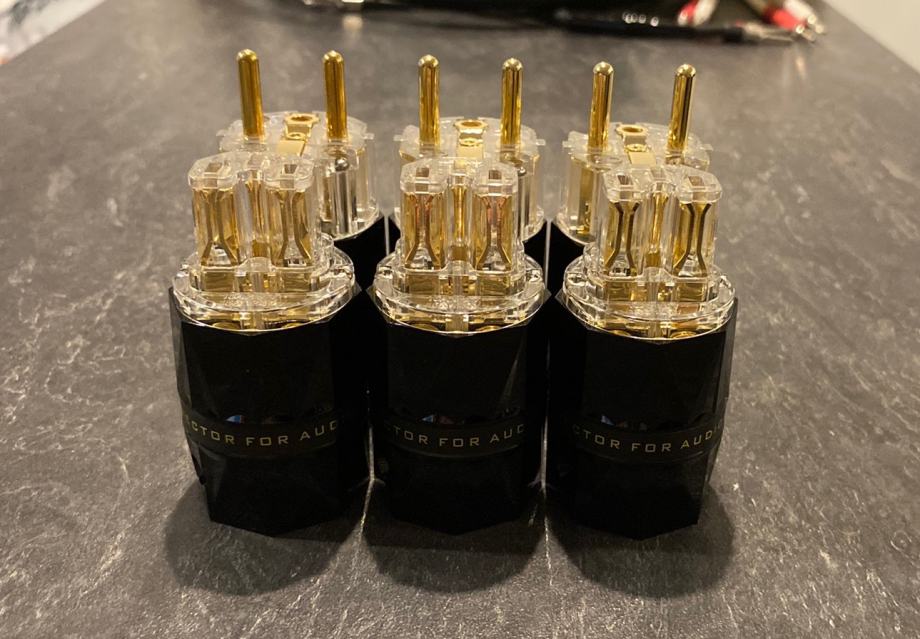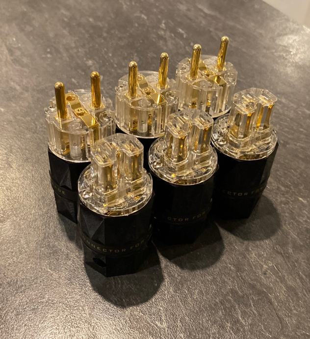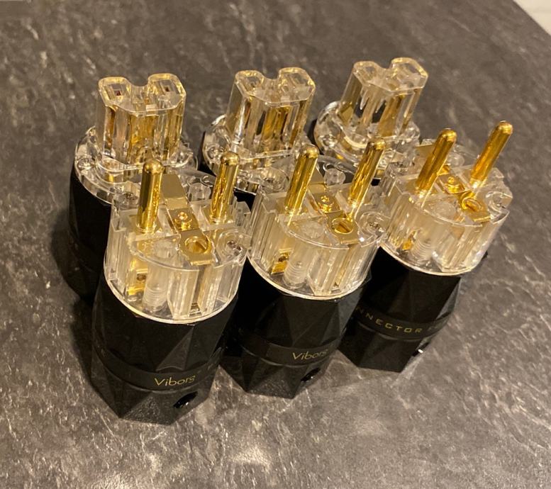 Naprodaj kakovostni Viborg konektorji VE503G (schuko) ter VF503G (iec) pure copper 24K gold plating.