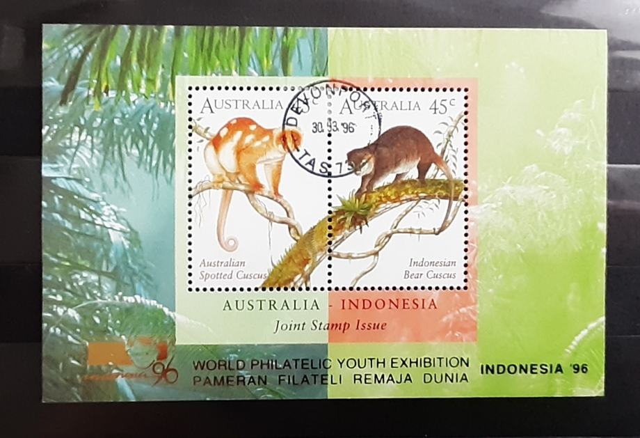 Avstralija 1996 Živali Bear Cuscus stamps show Indonesia žigosan blok