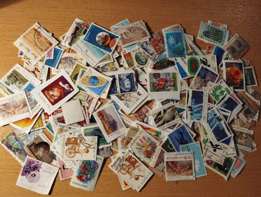 lot žigosanih avstralskih znamk, nekaj še odrezkov.