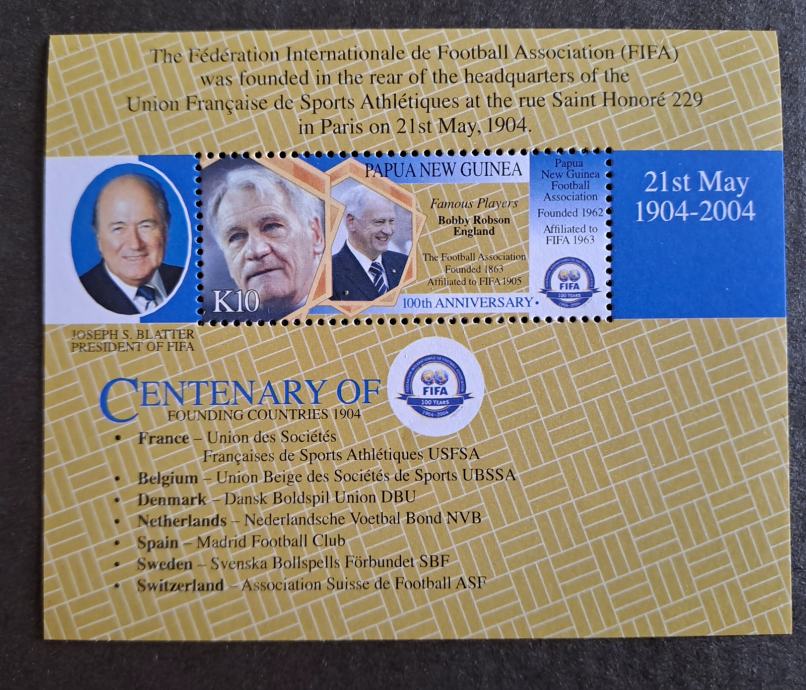 Prodajam dvojnike in ostale viške iz svoje zbirke. Papua Nova Gvineja 2004 svetovno prvenstvo nogomet FIFA, šport – blok 30.