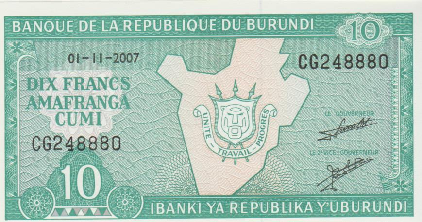 Prodam bankovec 10 FRACS P33e.2-2005 IN10 FRACS P33e.2-2007 (BURUNDI)UNC kvalitete.CENA JE ZA 1 BANKOVEC