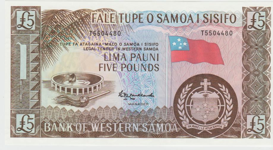 PRODAM REDEK BANKOVEC 5 FUNT ZAHODNE SAMOE P15aCS ( ZAHODNA SAMOA) 2020.UNC - Kvaliteta.