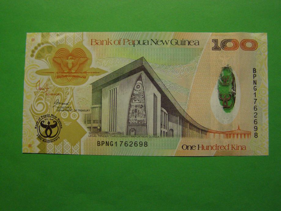 Prodam HIBRIDNI bankovec za 100 Kina (100 PGK) iz Papue nove Gvineje, kot ga lahko vidite na fotografijah. Bankovec je povsem nov - UNC kvalitete.