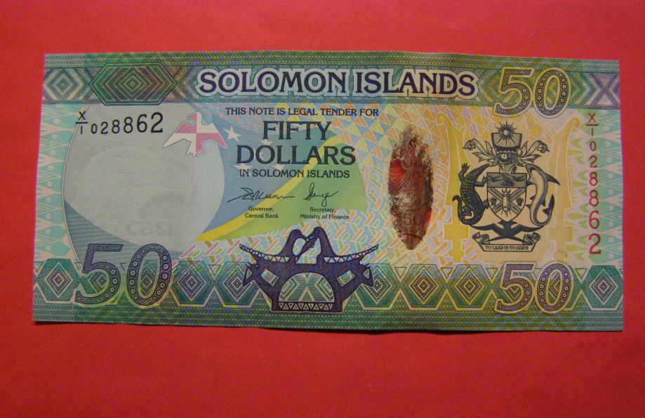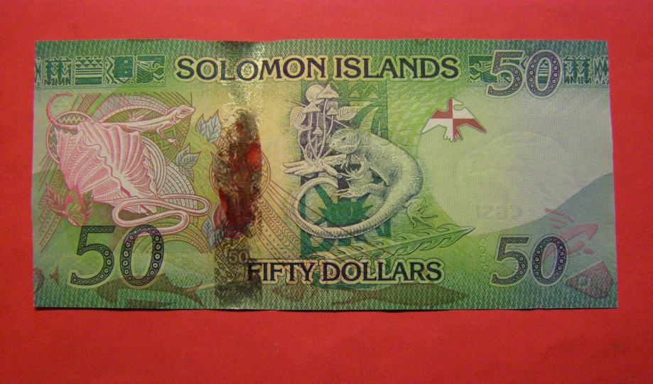 Prodam bankovec za 50 Dolarjev iz Solomonovih otokov (50 SBD), kot ga lahko vidite na fotografijah in je povsem nov - UNC kvalitete.