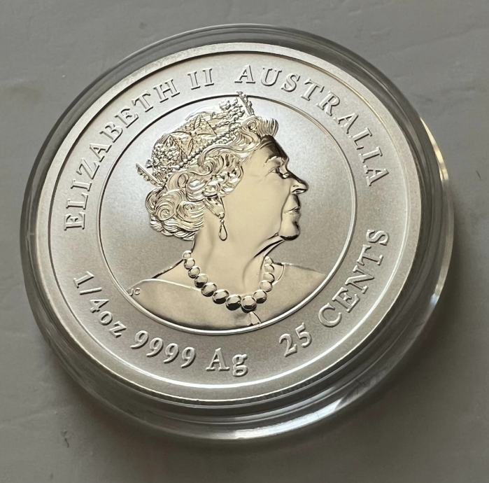 Čistina .9999, teža: 1/4 oz =7,77 g, premer: 25,5 mm