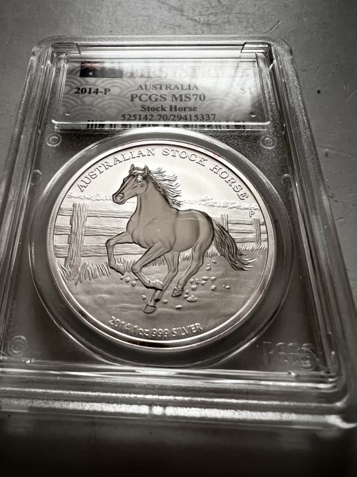 ‼️1 oz SREBRNIK AVSTRALSKI STOCK KONJ 2014 PCGS MS70