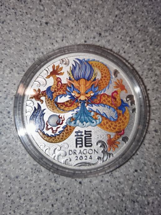 Prodam 1oz Srebrnik-DRAGON Lunar Year Series III Colored 1 Oz Silver Coin 1$ Australia 2024