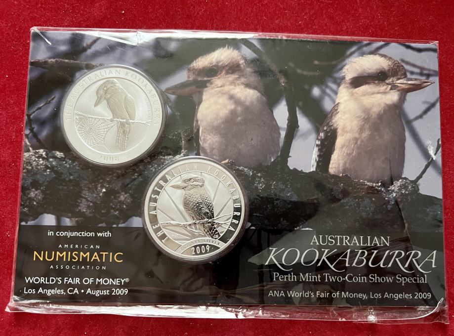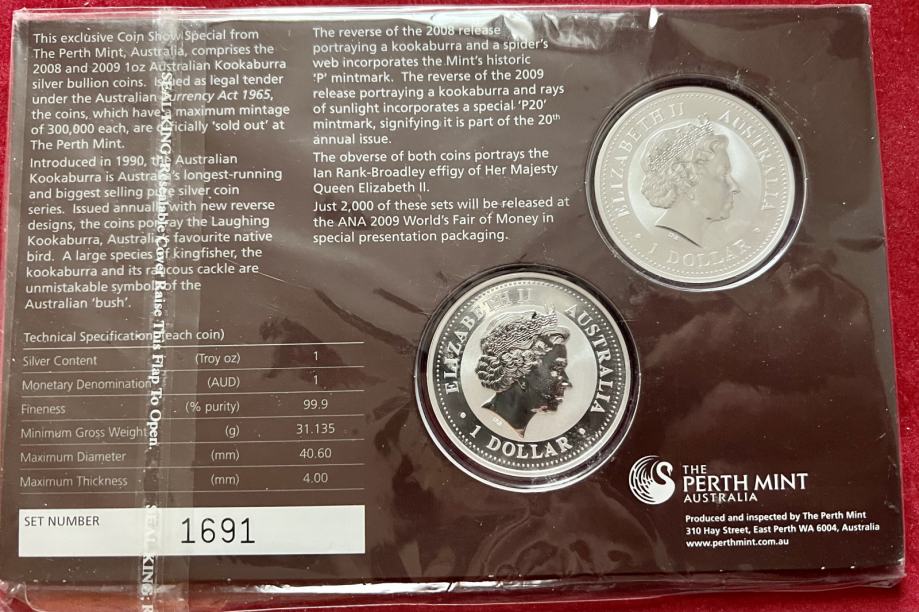 Redek numizmatični set 2x 1 OZ srebrnik kookabura