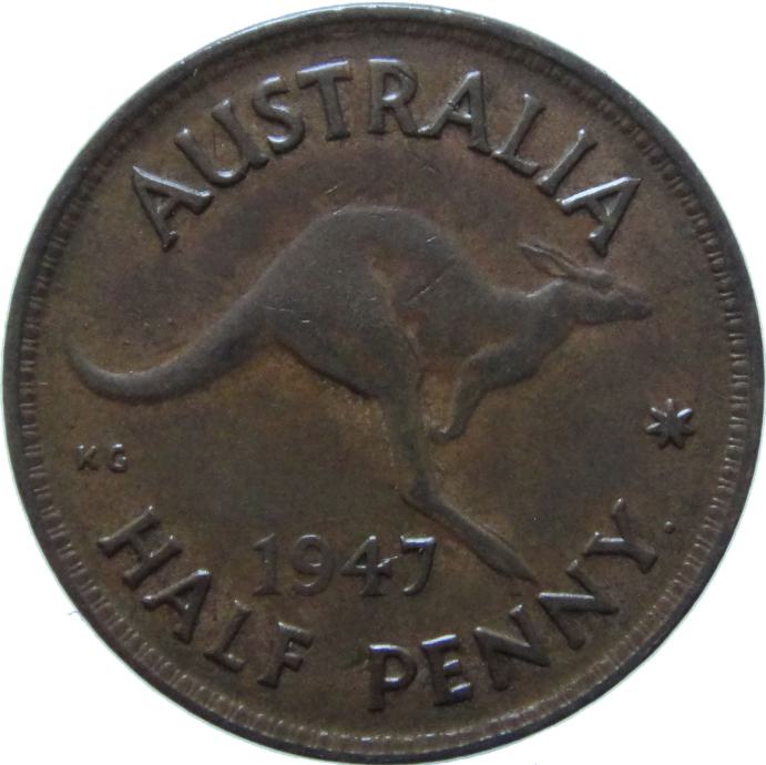 LaZooRo: Avstralija 1/2 Penny 1947 XF