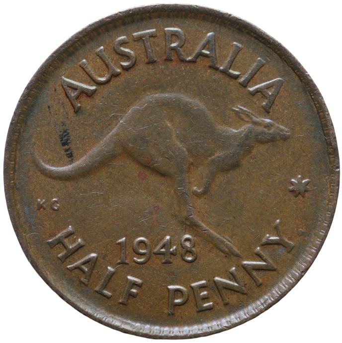 LaZooRo: Avstralija 1/2 PEnny 1948 XF