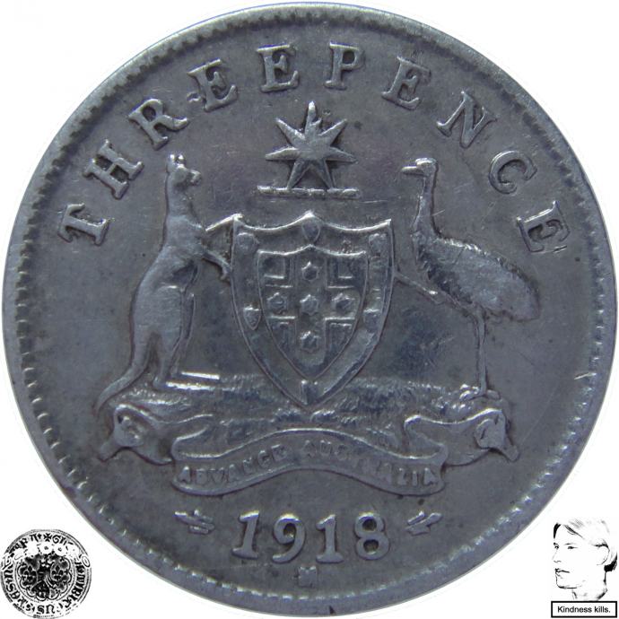 LaZooRo: Avstralija 3 Pence 1918 XF - Srebro