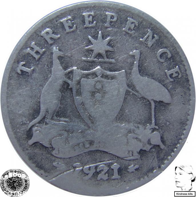 LaZooRo: Avstralija 3 Pence 1921 F a - Srebro