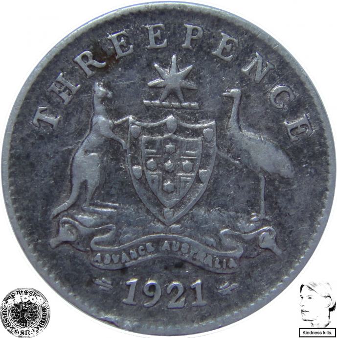 LaZooRo: Avstralija 3 Pence 1921 VF c - Srebro