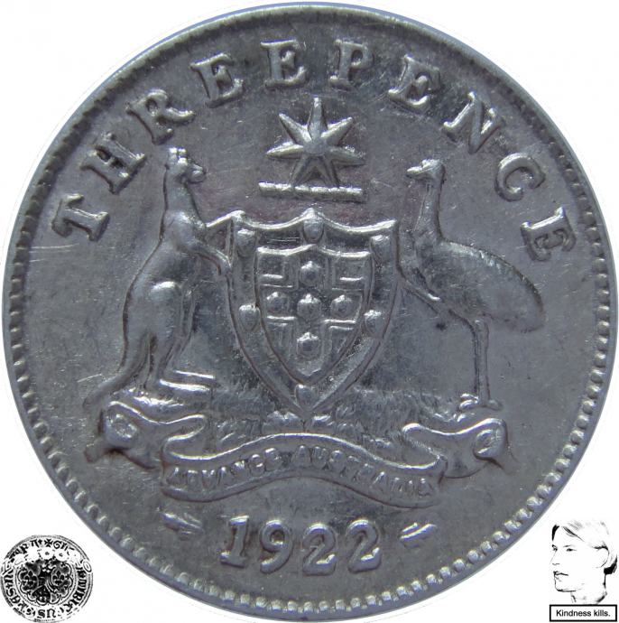 LaZooRo: Avstralija 3 Pence 1922 XF/UNC - Srebro