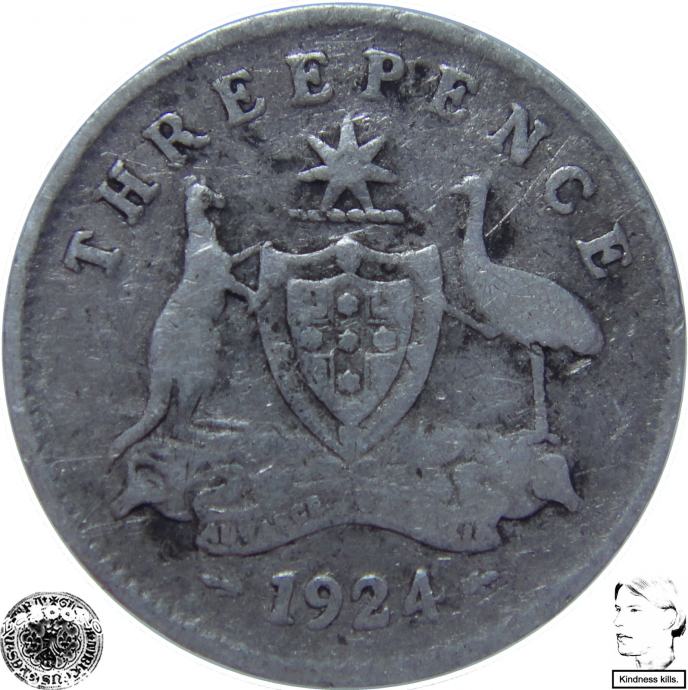 LaZooRo: Avstralija 3 Pence 1924 F a - Srebro