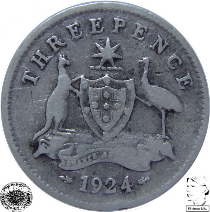 LaZooRo: Avstralija 3 Pence 1924 VF - Srebro