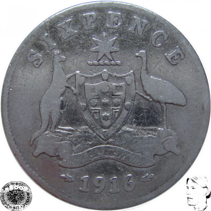 LaZooRo: Avstralija 6 Pence 1916 VF - Srebro