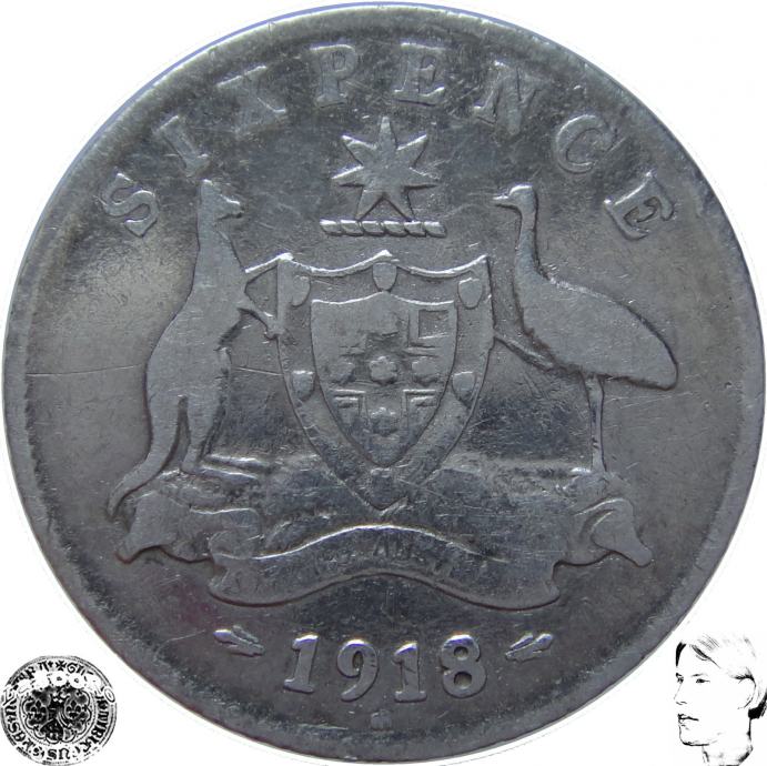 LaZooRo: Avstralija 6 Pence 1918 VF - Srebro