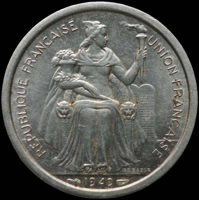 LaZooRo: Francoska Nova Kaledonija 1 Franc 1949 XF / UNC