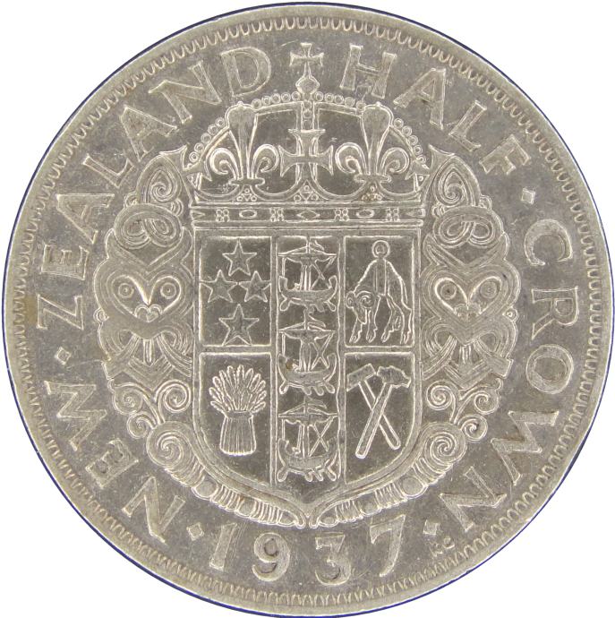 LaZooRo: Nova Zelandija 1/2 Crown 1937 VF/XF - Srebro