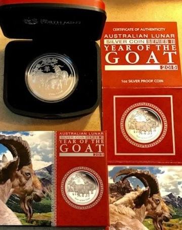 Prodam 1oz srebrnik (proof - poliranec) z motivom koze (Year of the Goat 2015), druge lunarne serije, ki se nahaja v zaščitni kapsuli, ta pa skupaj s certifikatom v škatlici, kot je razvidno iz fotografije.