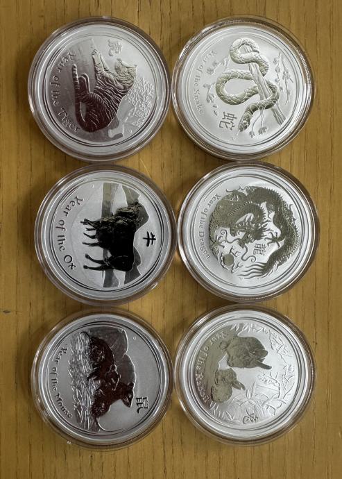 Prodam odlično ohranjenih 6 srebrnikov iz Avstralske Lunarne serije 2, teže 1oz: