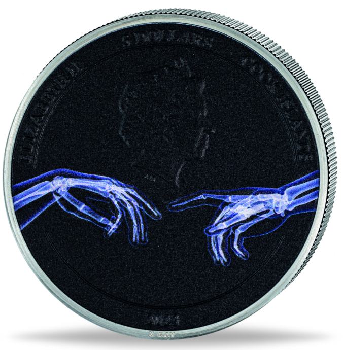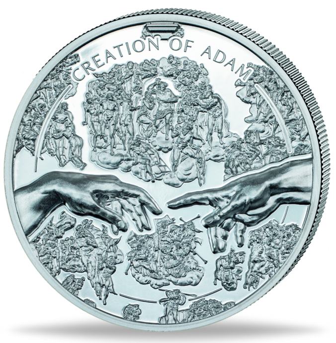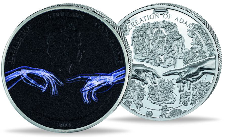 Iz lastne zbirke se prodaja proof srebrnik iz serije X-Ray. Creation of Adam - Michelangelo.