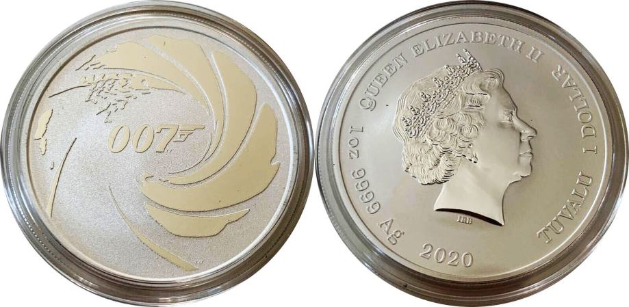 Prodam -Tuvalu Srebrnik 1 Dollar 2020 James Bond 007 .