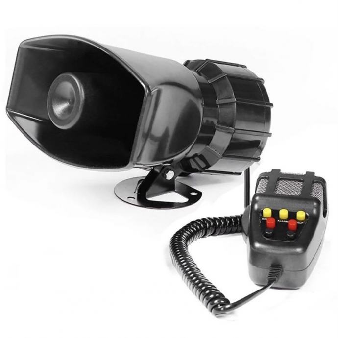 Sirena z megafonom s šestimi različnimi sirenami (reševalci, policija, pisk ipd. ). Zvočna moč do 110 decibelov. Sireno priključite na akumulator vozila ali priključek 12V v vozilu.